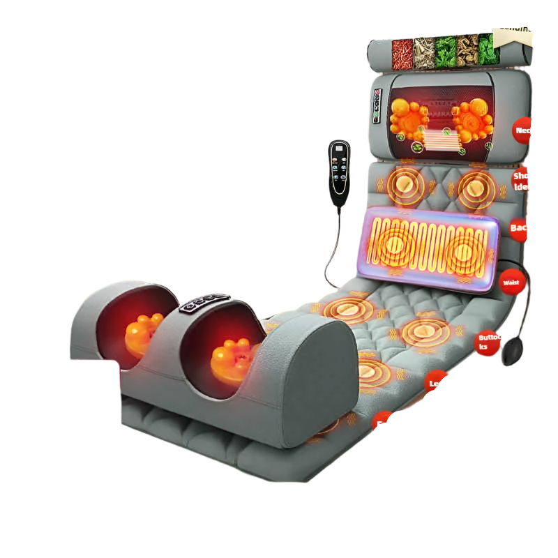 Experience complete relaxation from head to toe with the Electric Full Body Massage Mattress JD-409 — an all-in-one wellness solution combining advanced massage technology with comfort-first design. With 15 core functions, this intelligent cushion delivers targeted kneading, vibration, and heating to key areas like the neck, waist, shoulders, and thighs. Whether you're easing back pain, relieving tension, or simply unwinding, this mattress has you covered with multi-directional massage, Thai stretching, and soothing mugwort hot compress zones.